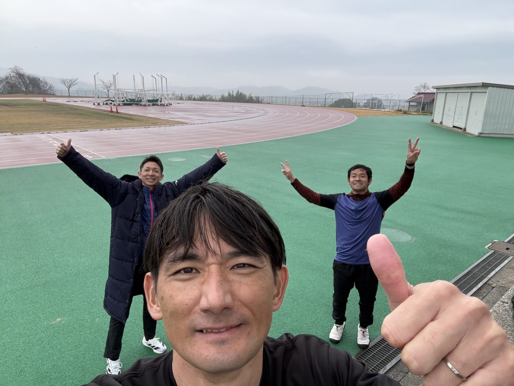 2025/12/21 投稿日: 12月 28, 2025 投稿者: もち 朝から栞の勉強会🔖zoom 終わってバタバタ神崎山陸上競技場へ。 学生時代の友人である後藤が大阪からわざわざ来てくれた。 溝辺も来てくれて3人で練習。 良い刺激になった。 腹筋の筋肉痛がヤバい。